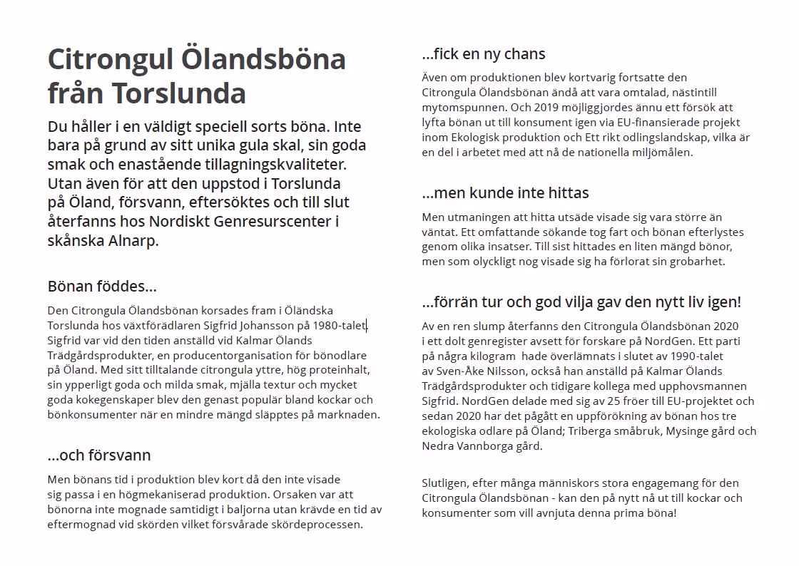 Citrongula Ölandsbönan ändå att vara omtalad, nästintill