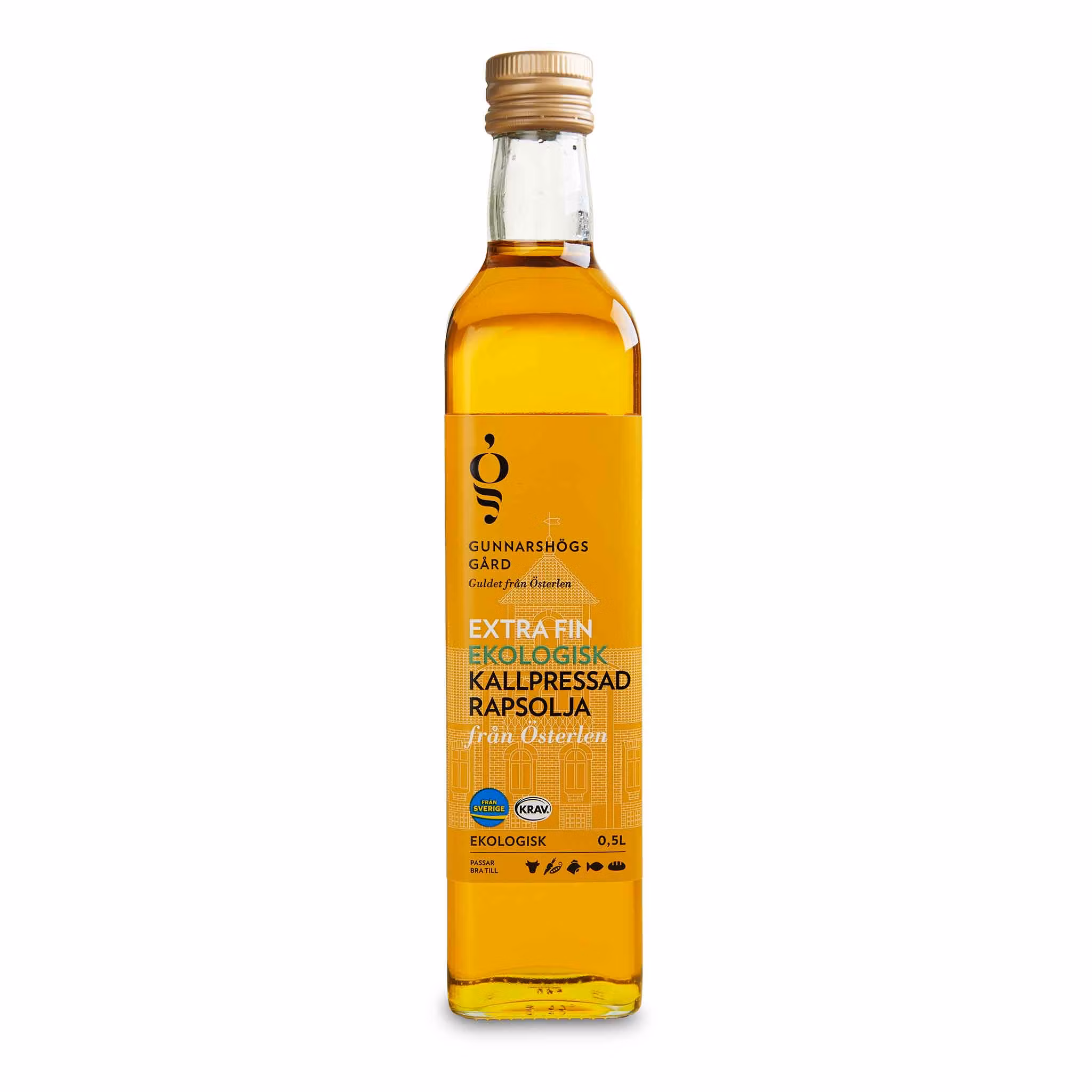 Gunnarshögs Gårds ekologiska kallpressade rapsolja är en högkvalitativ och näringsrik olja som framställs genom skonsam kallpressning av ekologisk rapsfrö. Oljan är av högsta kvalitet och har en mild och nötaktig smak som passar perfekt till både matlagning och som dressing på sallader och andra råa rätter.