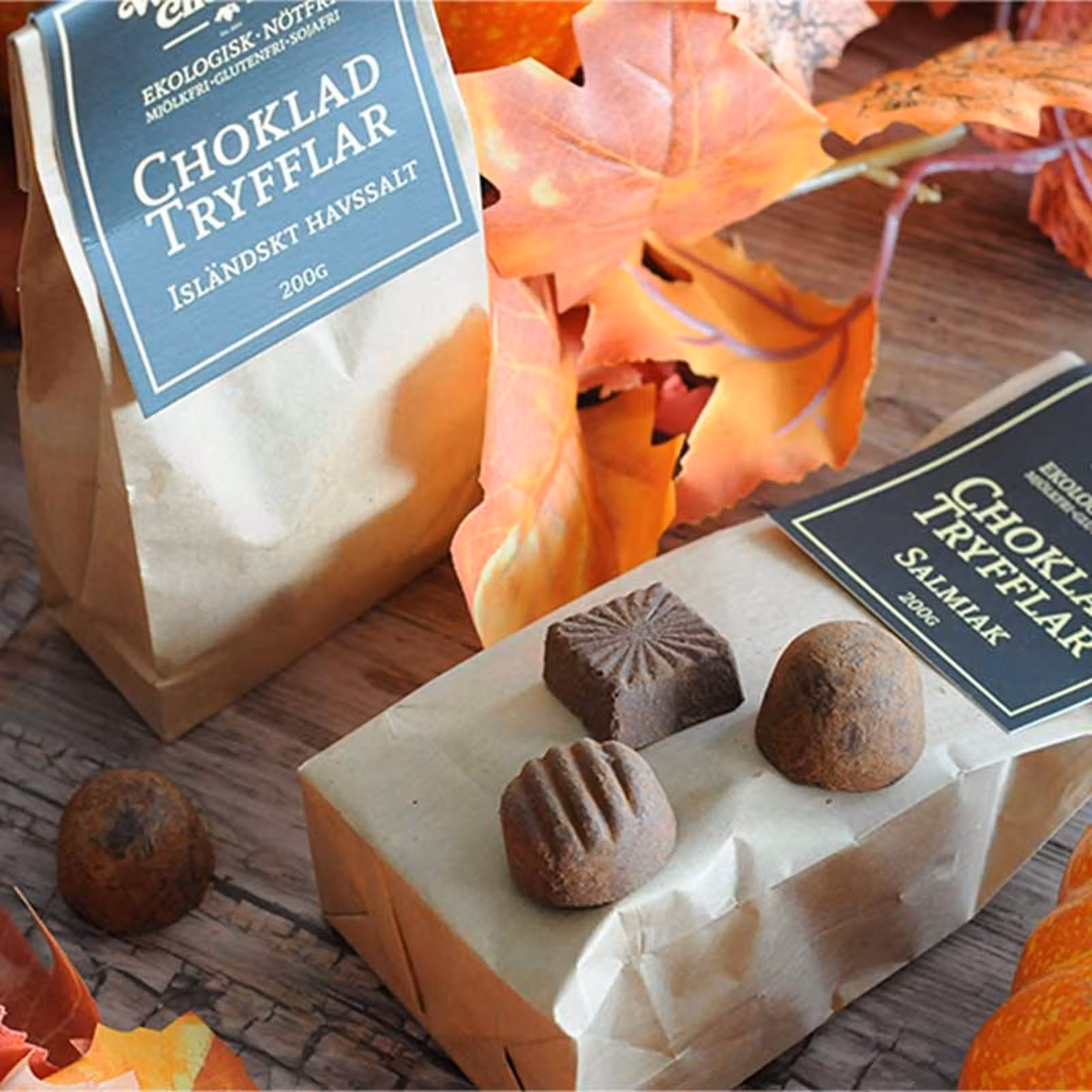 Ekologisk chokladtryffel med apelsin från Värmland.