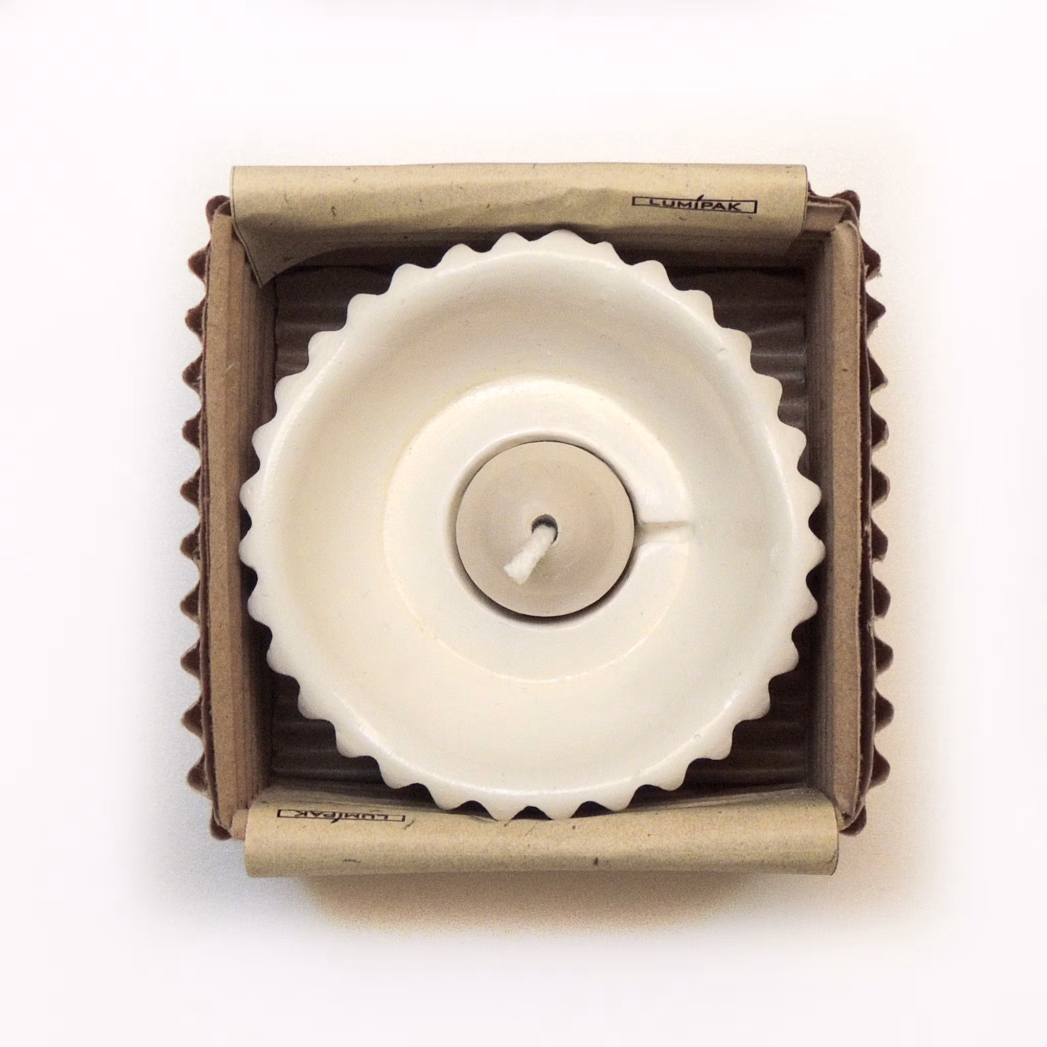 Klar att fyllas på med matolja. Brännaren i mitten håller en extralång veke som sitter osynligt under den.